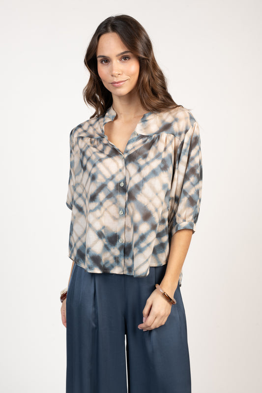 BLOUSE IMPRIMÉE ESTEBAN ÉCRU & MARINE