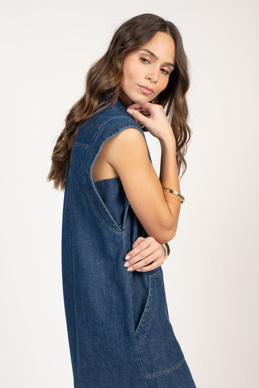VESTE EN JEAN SANS MANCHES DARYAH BLEU