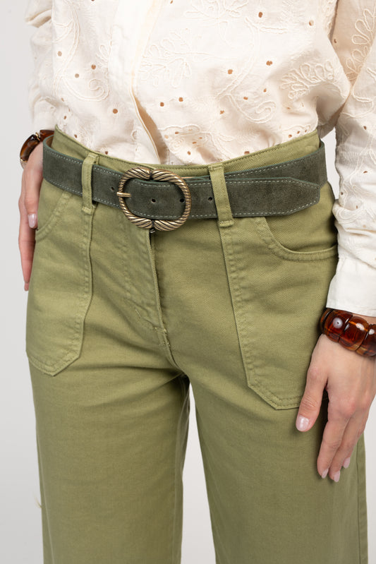 CEINTURE EN CUIR TRESSÉE LARGE MANON VERTE