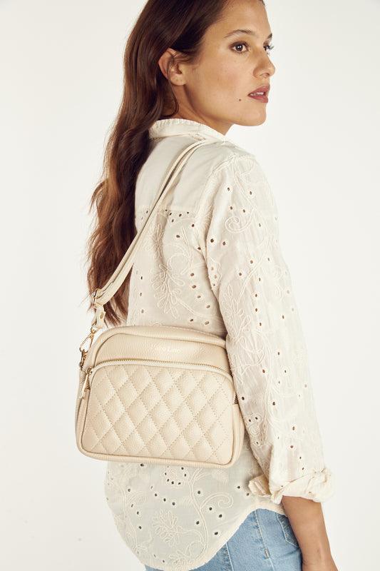 ÉCHARPE TRIANGLE DARCY IMPRIMÉ GÉOMETRIQUE BEIGE