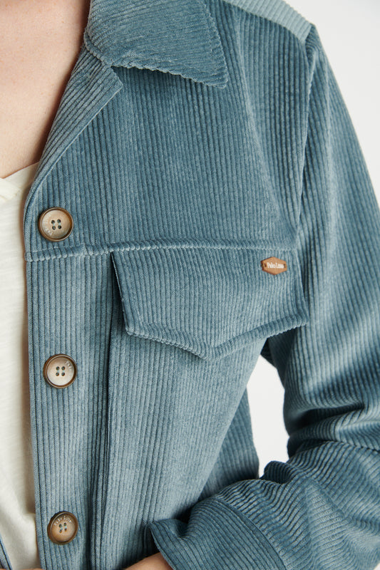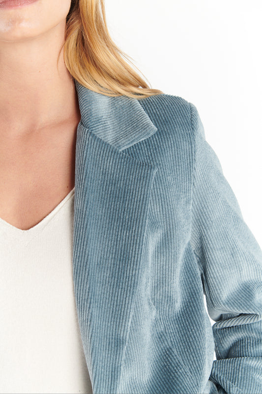 VESTE COURTE VELOURS DENISA BLEU CENDRE