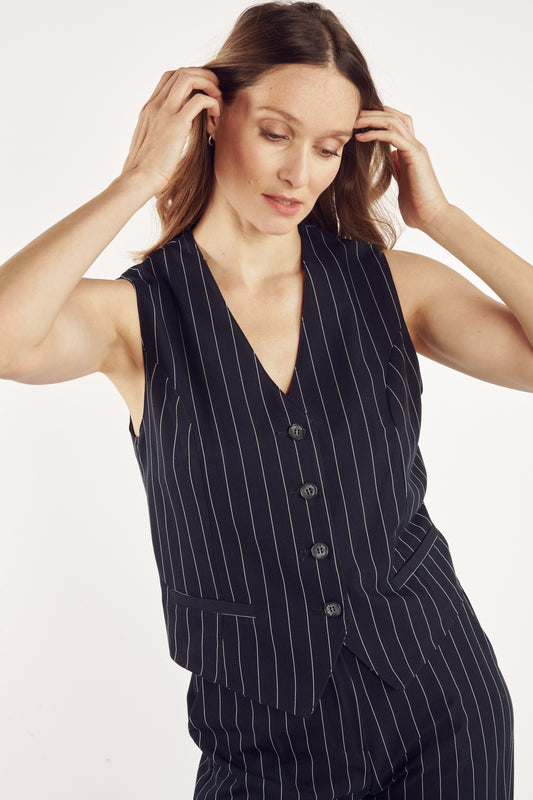 GILET SANS MANCHES À RAYURES MARINE CAMILLE