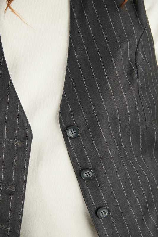 GILET BARMAN À RAYURES GRIS FONCÉ DAMIEN