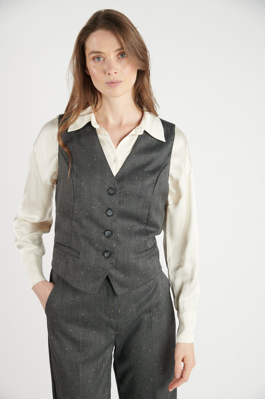 GILET BARMAN DAVID LUREX GRIS FONCÉ