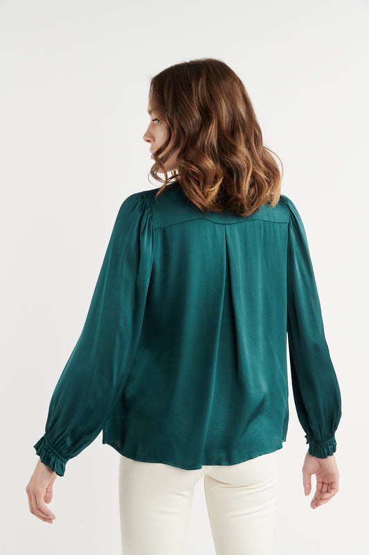 CHEMISE COL PLISSÉ FLORA VERT PIN