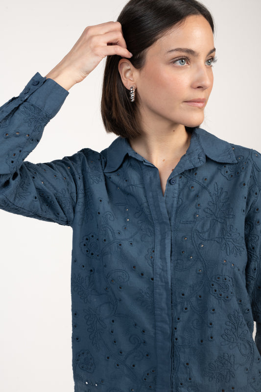 CHEMISE BRODÉE EDWIGE BLEU