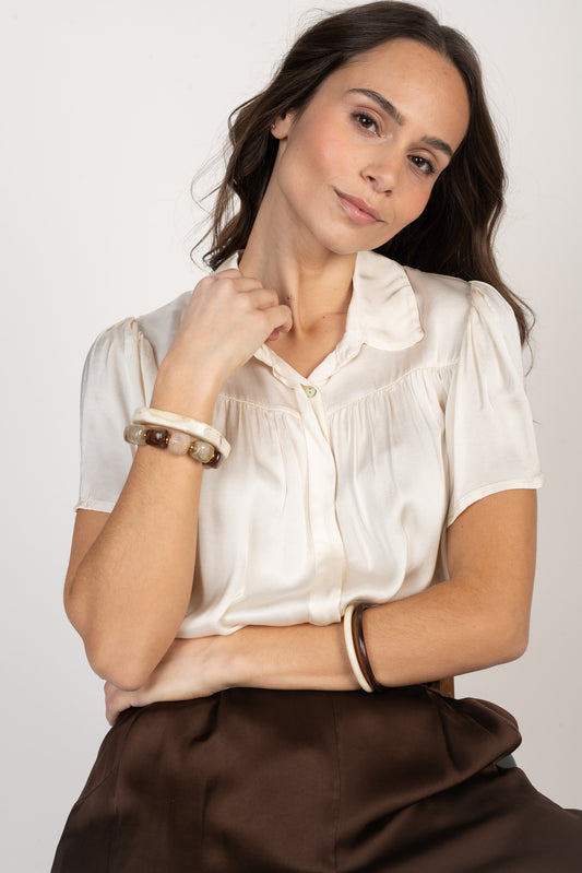 CHEMISIER SATINÉ ÉVANGÉLINA ÉCRUE