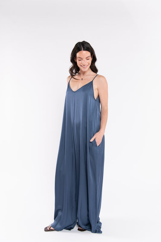COMBINAISON SATINÉE FLAVIE BLEUE