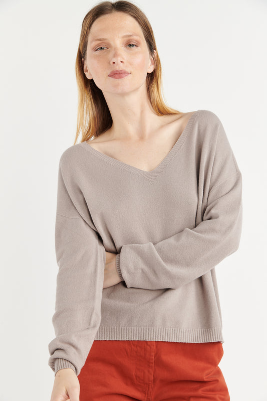PULL COL V BETTINA TAUPE