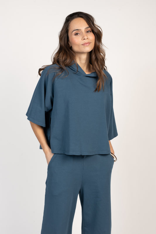 SWEAT CAPUCHE COURT ÉNORA BLEU