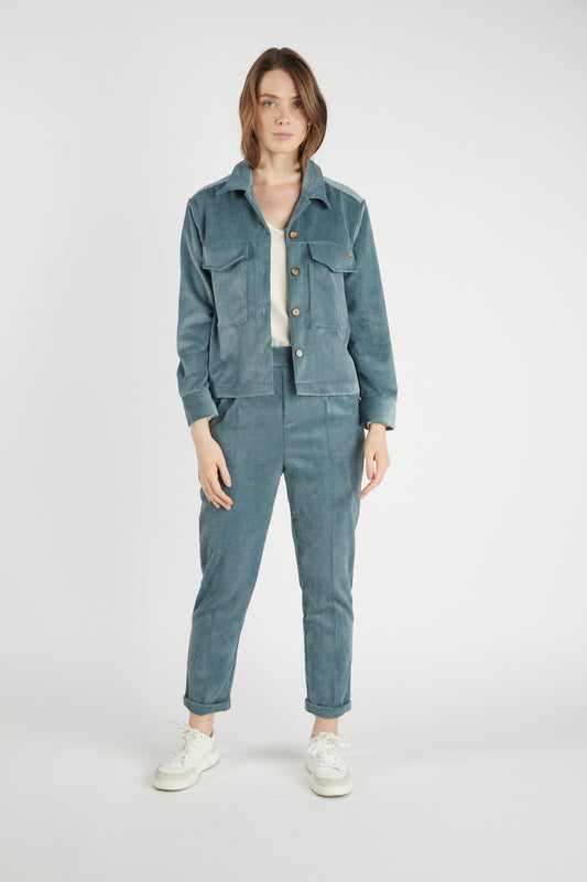 VESTE COURTE VELOURS DENISA BLEU CENDRE