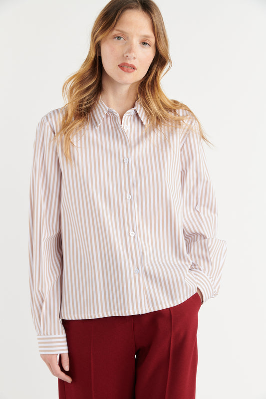 CHEMISE COURTE RAYURES LARGES TAUPE CASSIERegular price 59,50€Sale price 59,50€ Regular priceUnit price / per85,00€Sale