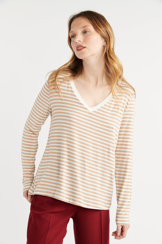 T-SHIRT COL V RAYURES BEIGES BADIALLORegular price 41,30€Sale price 41,30€ Regular priceUnit price / per59,00€Sale