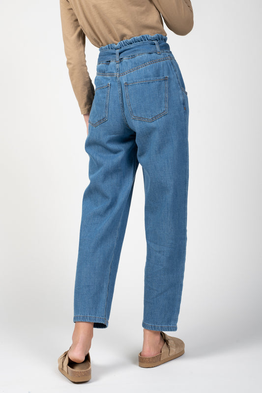 HIGH WAIST SLIM 5-POCKET JEANS - BLUE