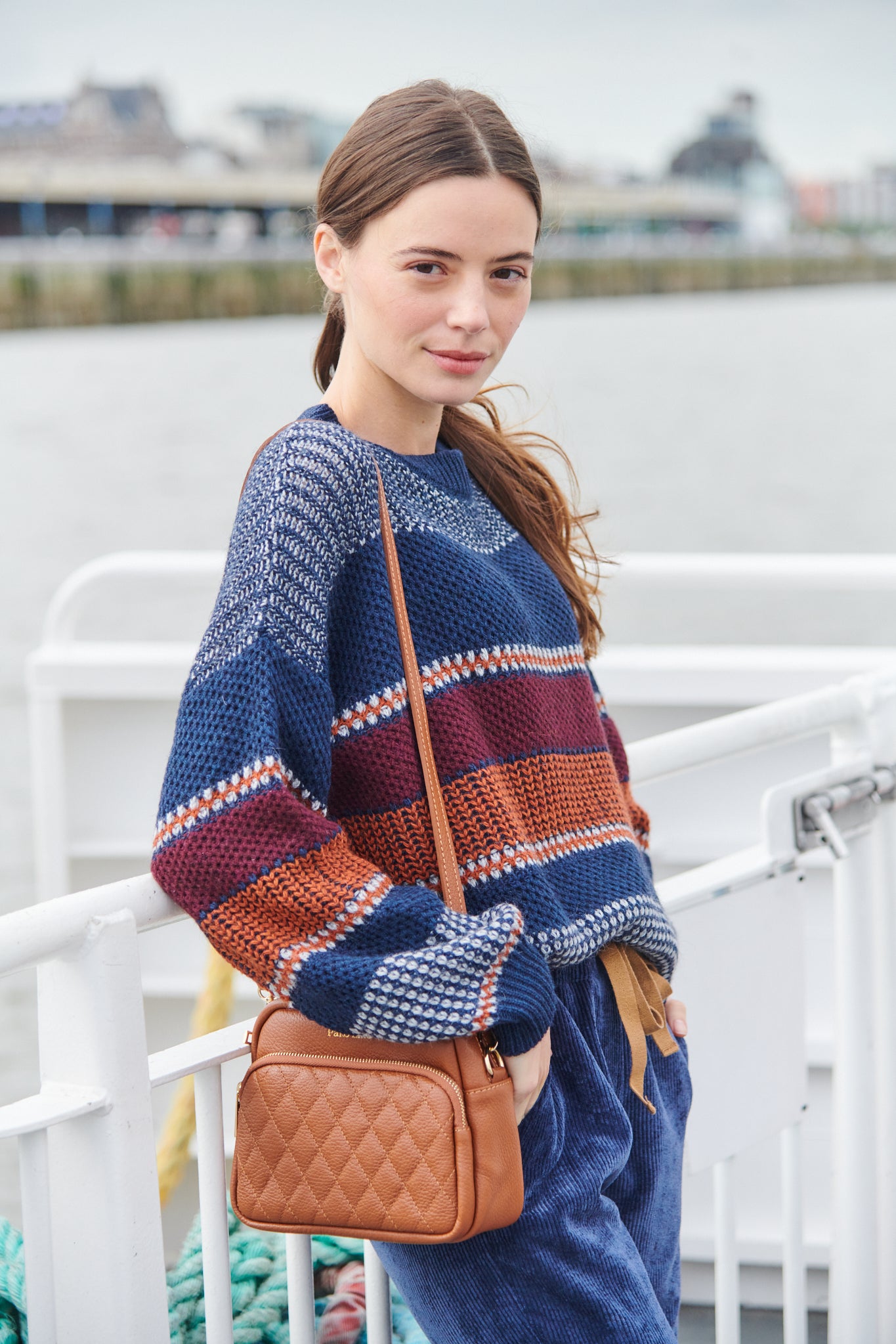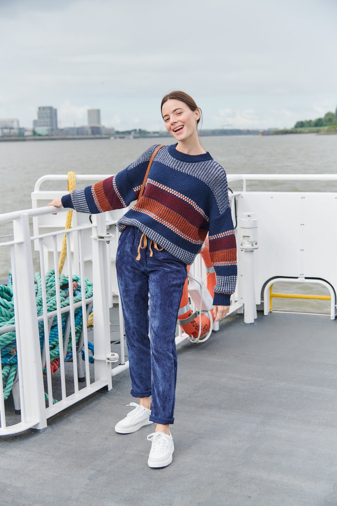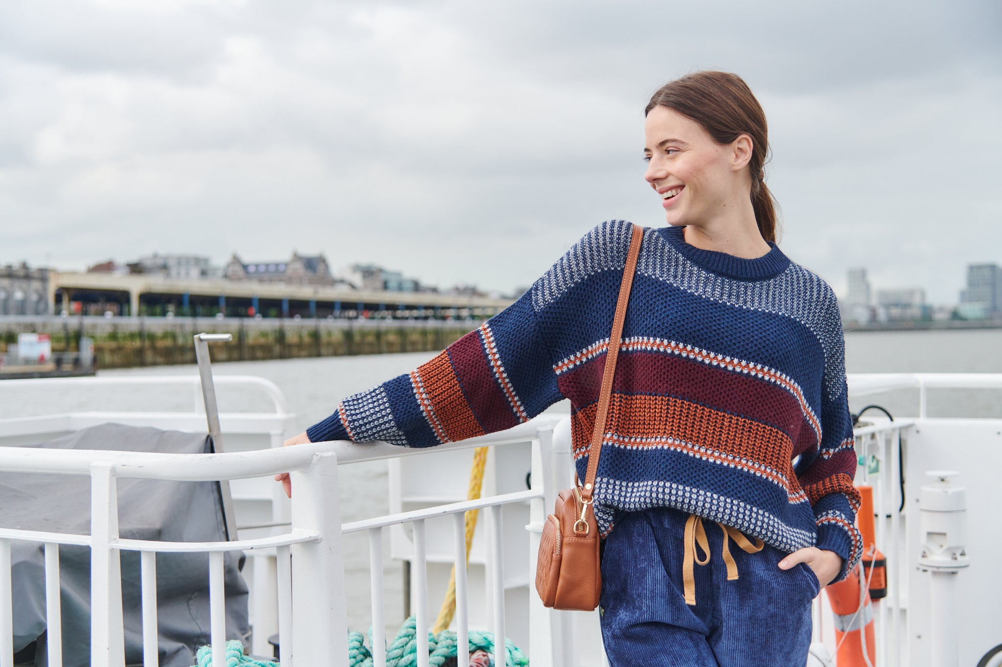 Mailles amples, imprimés légers, denim souple et touches de rouge paprika : une allure fluide et naturelle, pensée pour voguer entre ville et grand air.