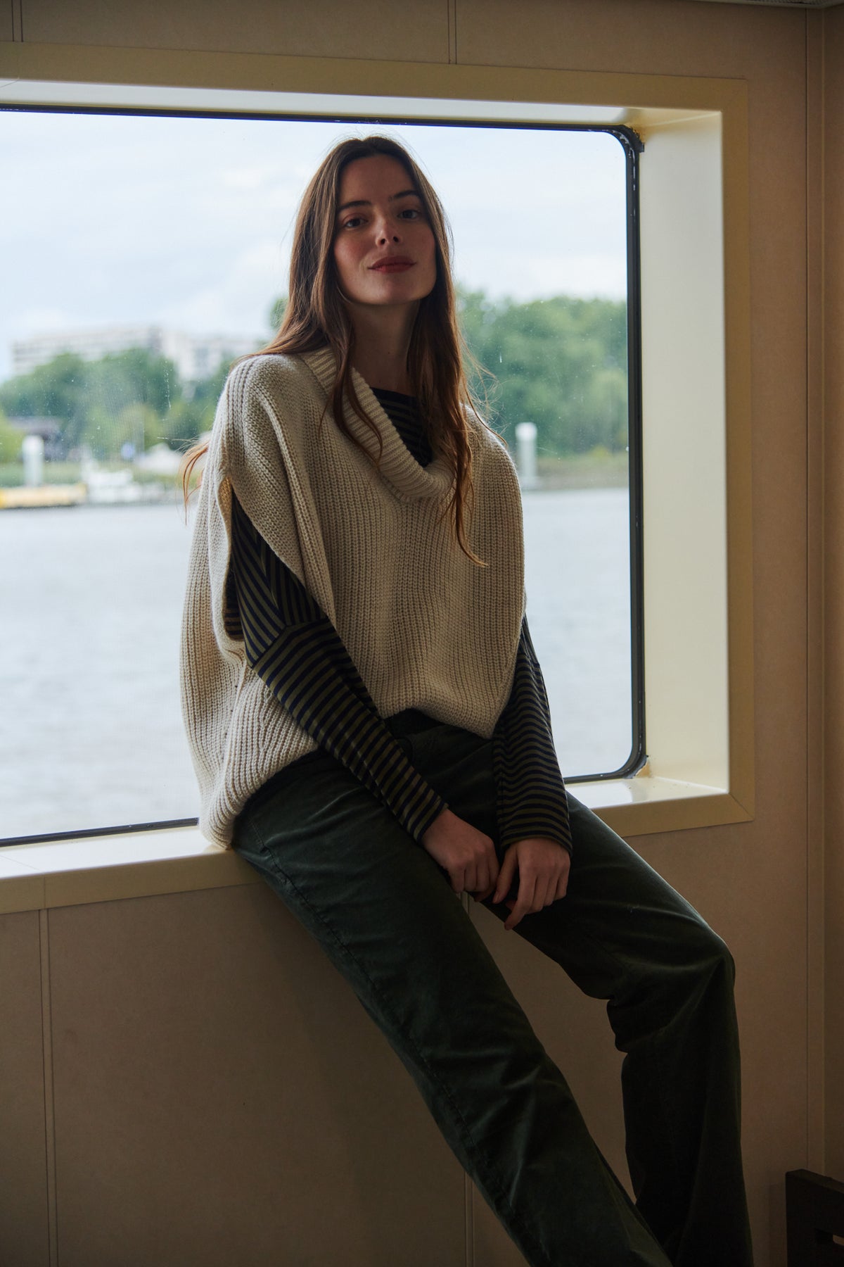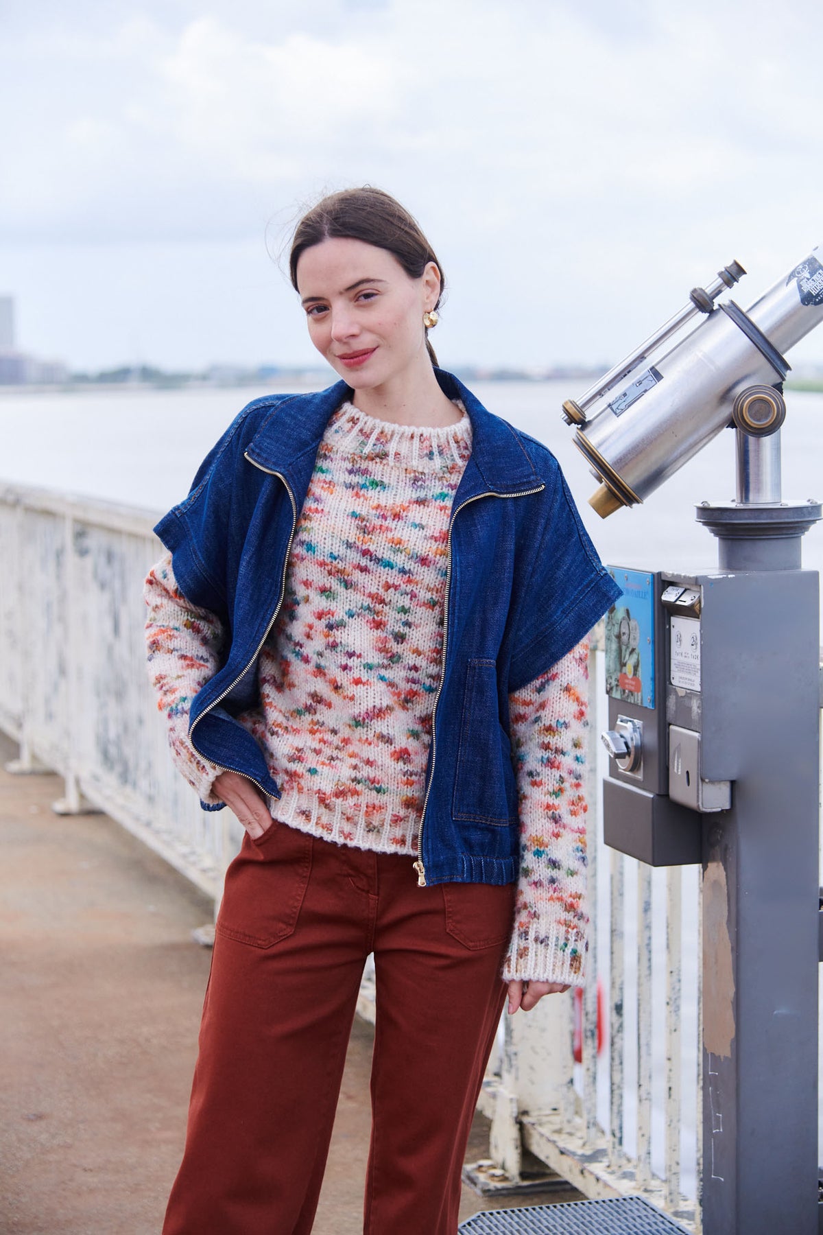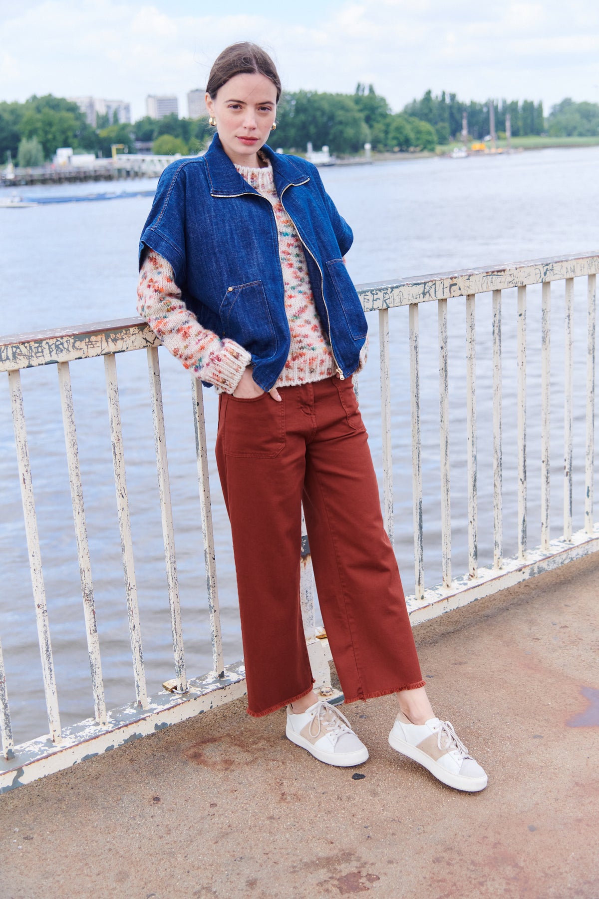 Mailles amples, imprimés légers, denim souple et touches de rouge paprika : une allure fluide et naturelle, pensée pour voguer entre ville et grand air.