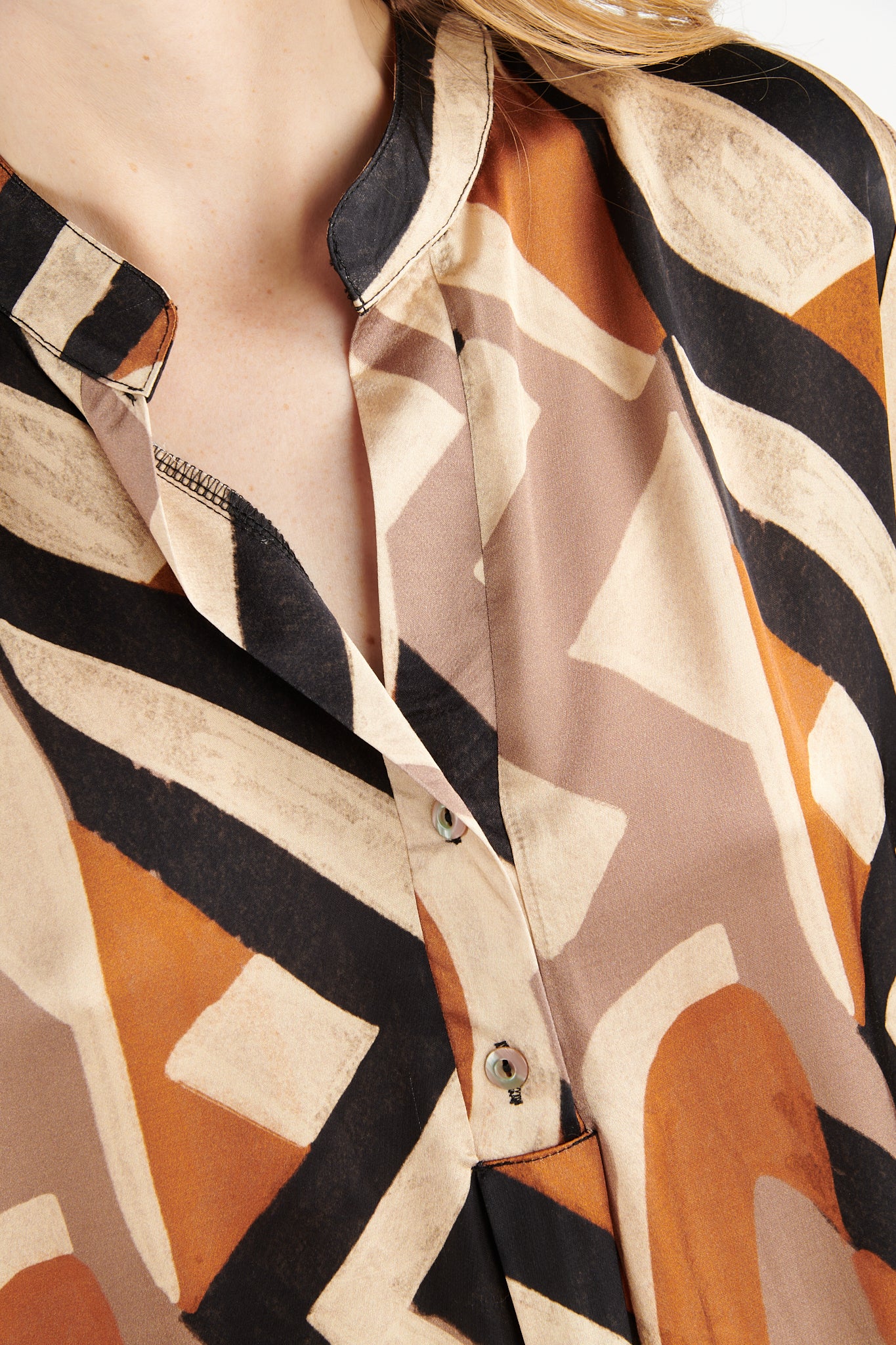 La blouse Balantin a vraiment tout pour plaire ! Son imprimé géométrique tabac et noir est audacieux et moderne. Coupe ample et matière fluide 100% viscose certifiée EcoVero, ce modèle va vous convaincre par son élégance. Pour un look du quotidien, pour une journée au bureau ou encore une tenue de soirée, Balantin est le top parfait.