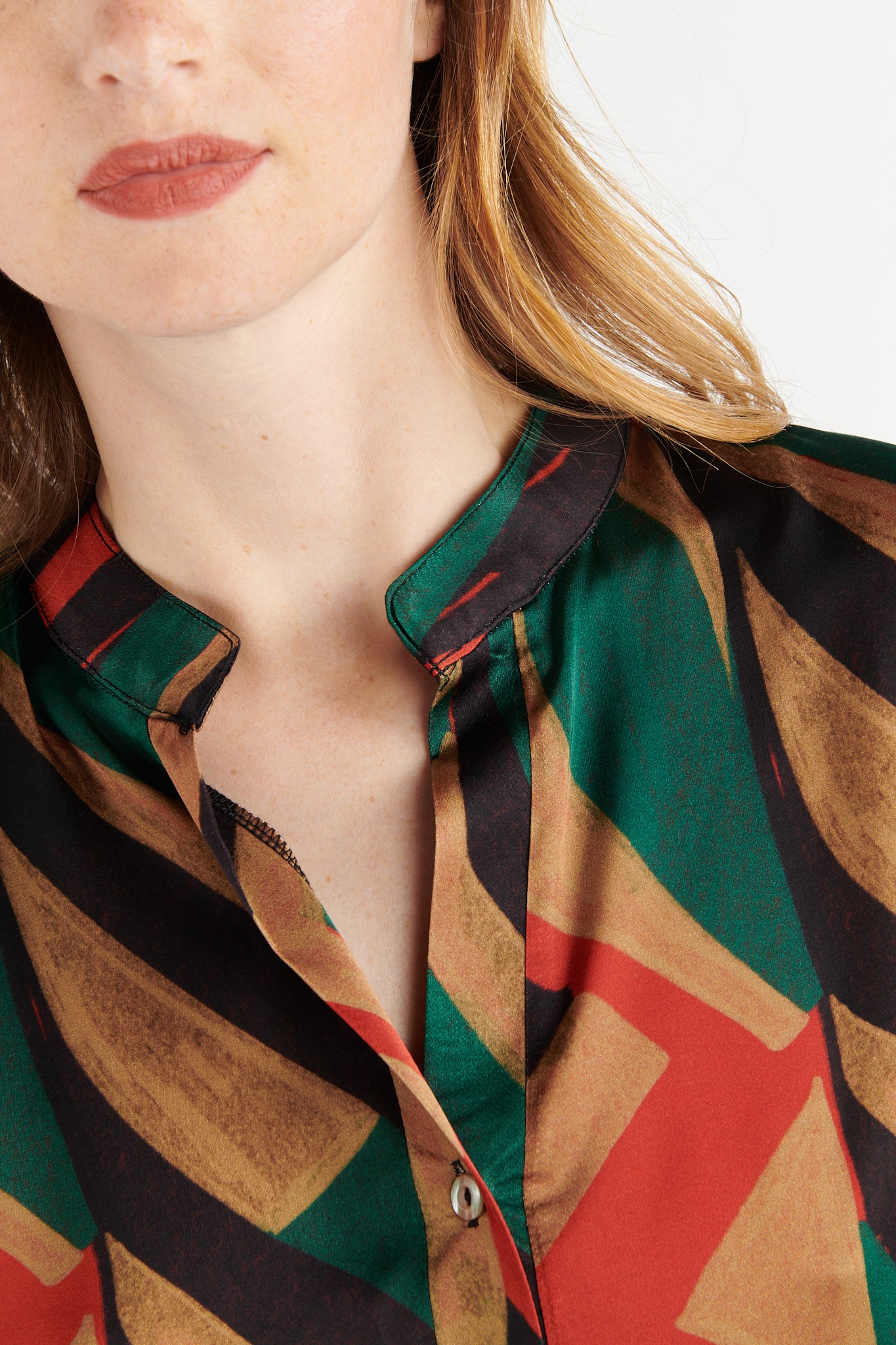 La blouse Balantin a vraiment tout pour vous faire craquer ! Son imprimé géométrique vert et grenade est audacieux et moderne. Elle dispose d'une coupe ample et d'une matière fluide 100% viscose certifiée EcoVero. Son encolure tunisienne se poursuit par deux boutons nacrés. Pour un look du quotidien, pour une journée au bureau ou encore une tenue de soirée, Balantin est le top parfait.