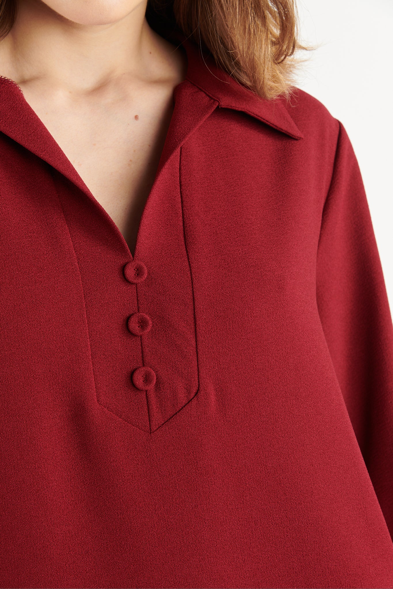 Cette robe manches longues est un must-have pour votre garde-robe ! Sa coupe droite ample et ses poches latérales pratiques en font une pièce facile à porter au quotidien. Le col chemise et le col V avec ses finitions faux boutons ajoutent une touche d'élégance à la tenue. Disponible en grenade, une couleur vibrante et tendance.