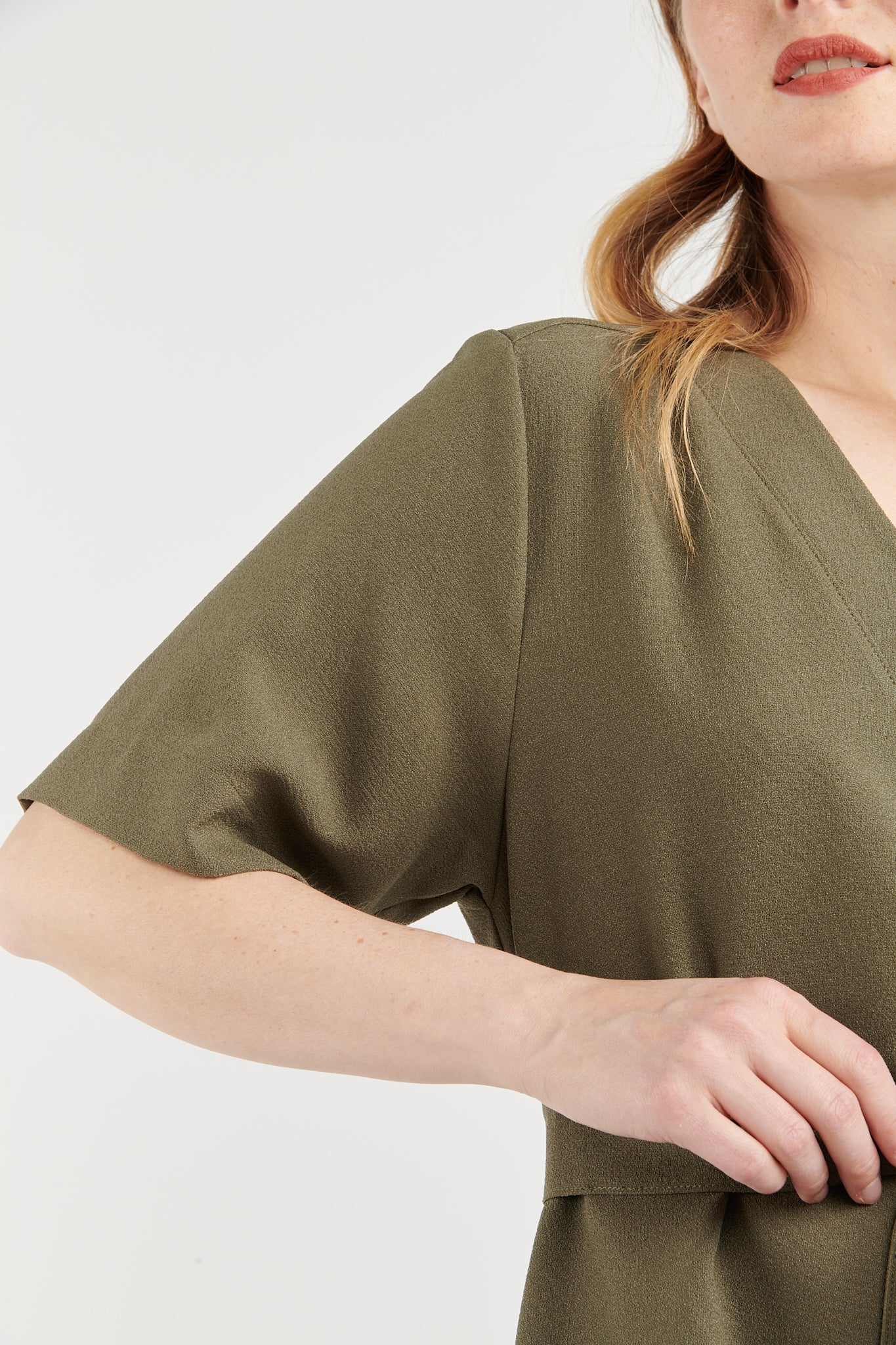 La robe Brooke est idéale pour la saison Automne/Hiver. En effet ce modèle disposant d'un col V et de manches courtes se resserre à la taille à l'aide d'une ceinture pour mettre en valeur votre silhouette. Vous avez également la possibilité de la porter sans, grâce à sa coupe droite. Matière style crêpe et couleur kaki, ce modèle est un véritable intemporel à avoir dans son dressing. Disponible dans de nombreux coloris.