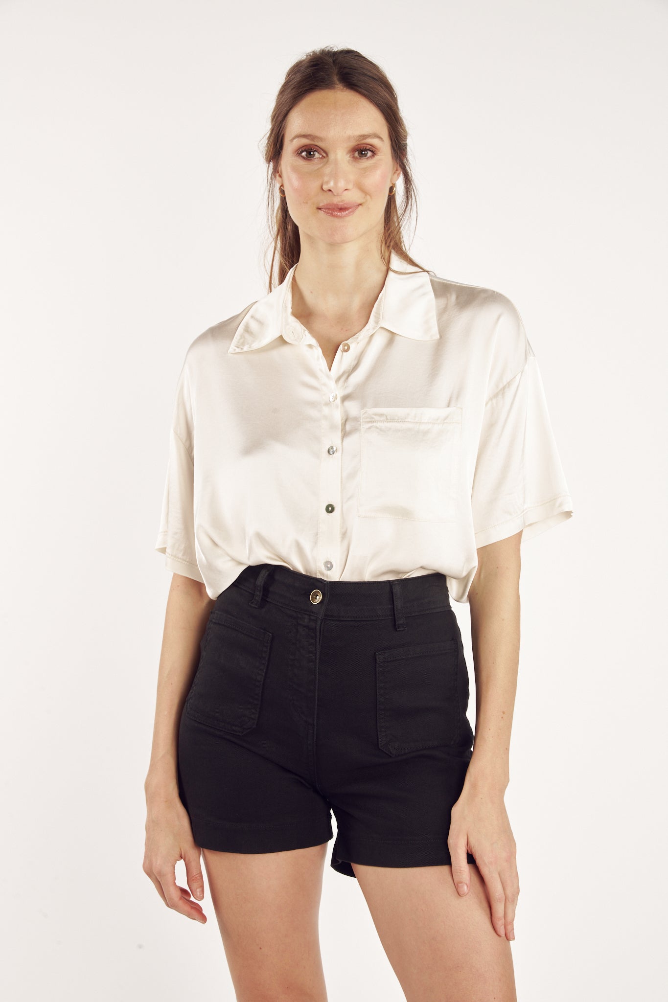 Véritable basique du vestiaire estival, le short Cassiel noir s’impose comme un incontournable. Sa taille haute épouse parfaitement les hanches pour une silhouette flatteuse, tandis que ses poches plaquées à l’avant et à l’arrière apportent du relief et du caractère au modèle.