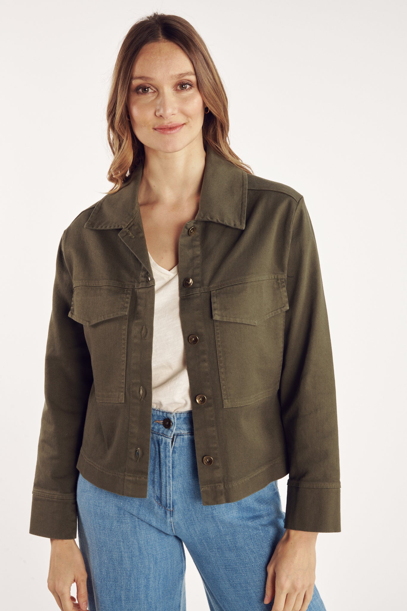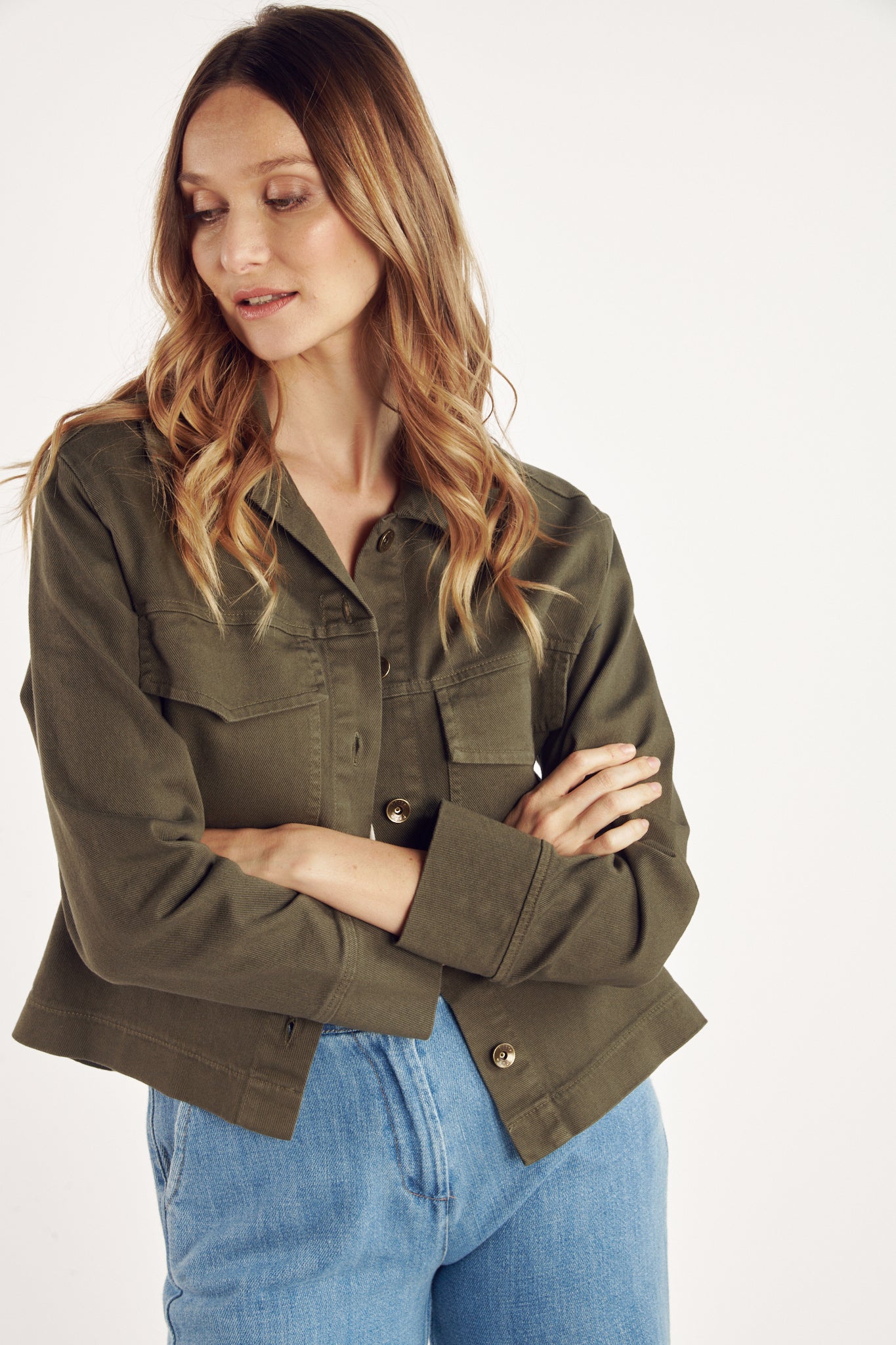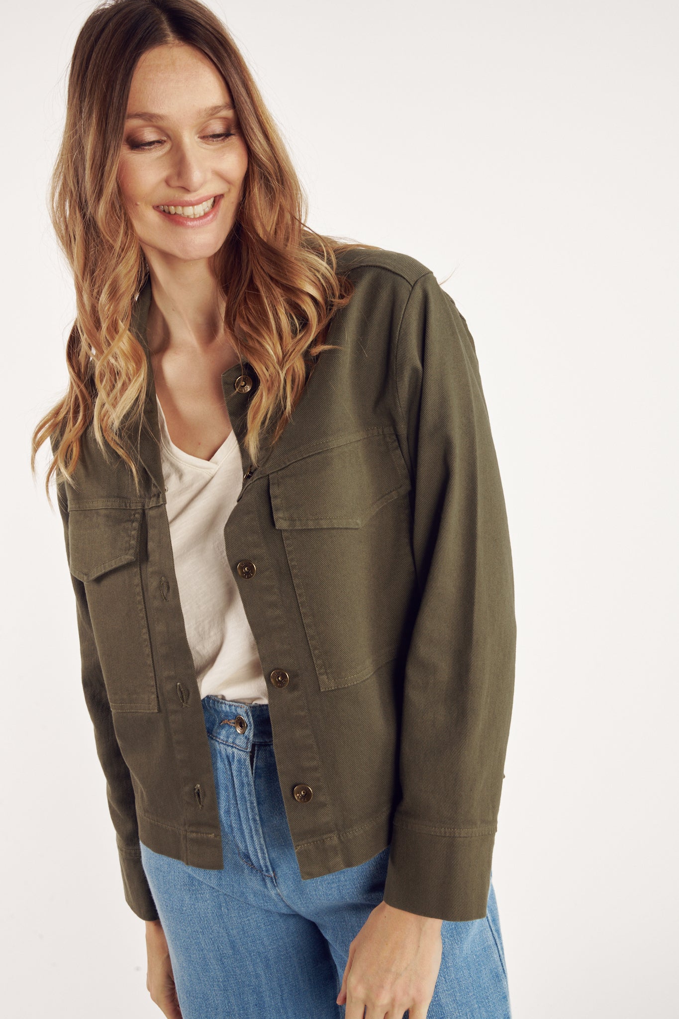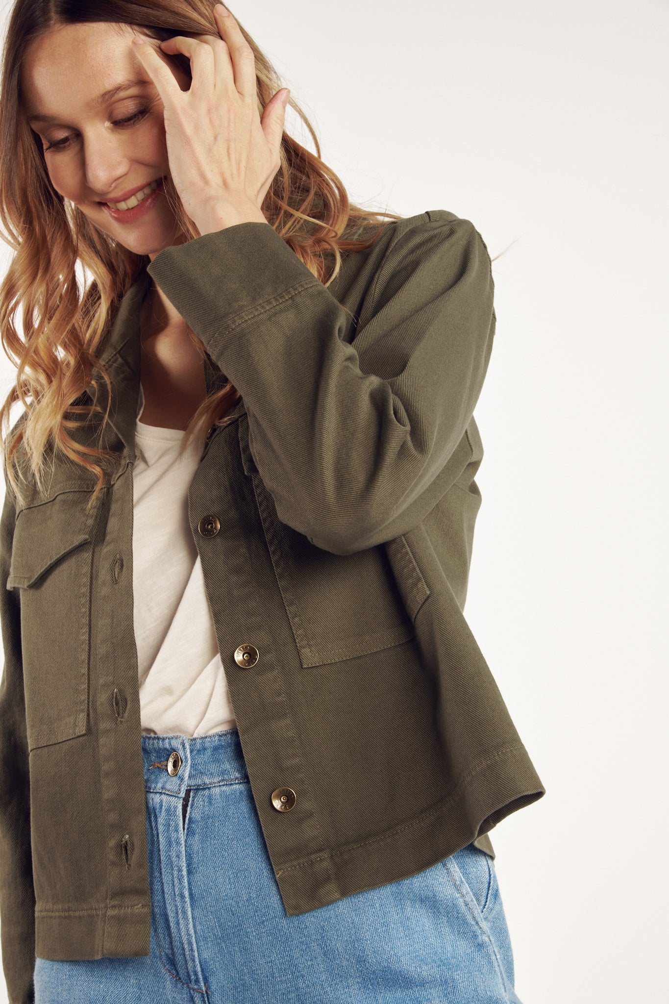 Confectionnée dans une teinte kaki intemporelle, la veste Celene séduit par sa coupe structurée et son allure décontractée. Dotée de poches à rabat sur la poitrine et d’une fermeture boutonnée, elle conjugue praticité et élégance. Polyvalente, elle s’adapte à toutes les occasions, apportant une note de caractère aussi bien sur une tenue casual que sur un look plus habillé.