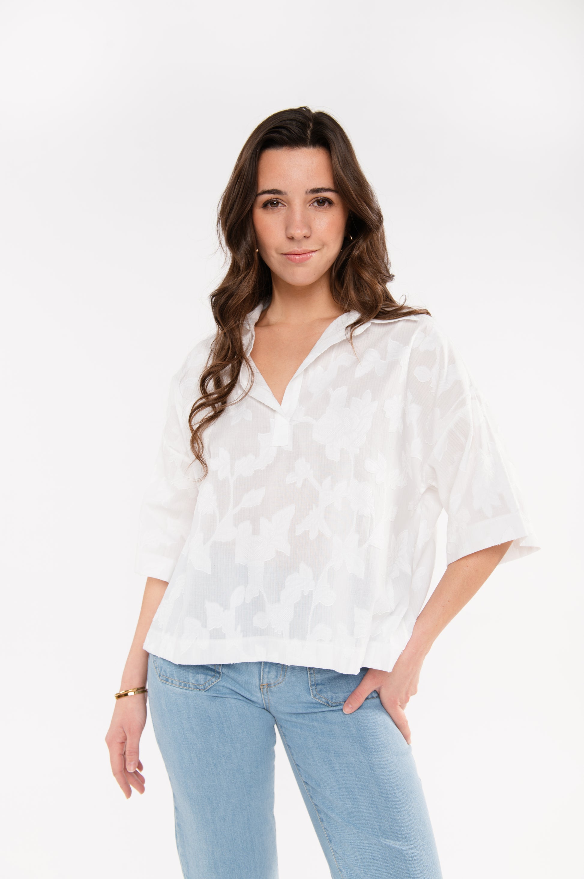 BLOUSE À FLEURS BRODÉE EMMANUELLE BLANCHE