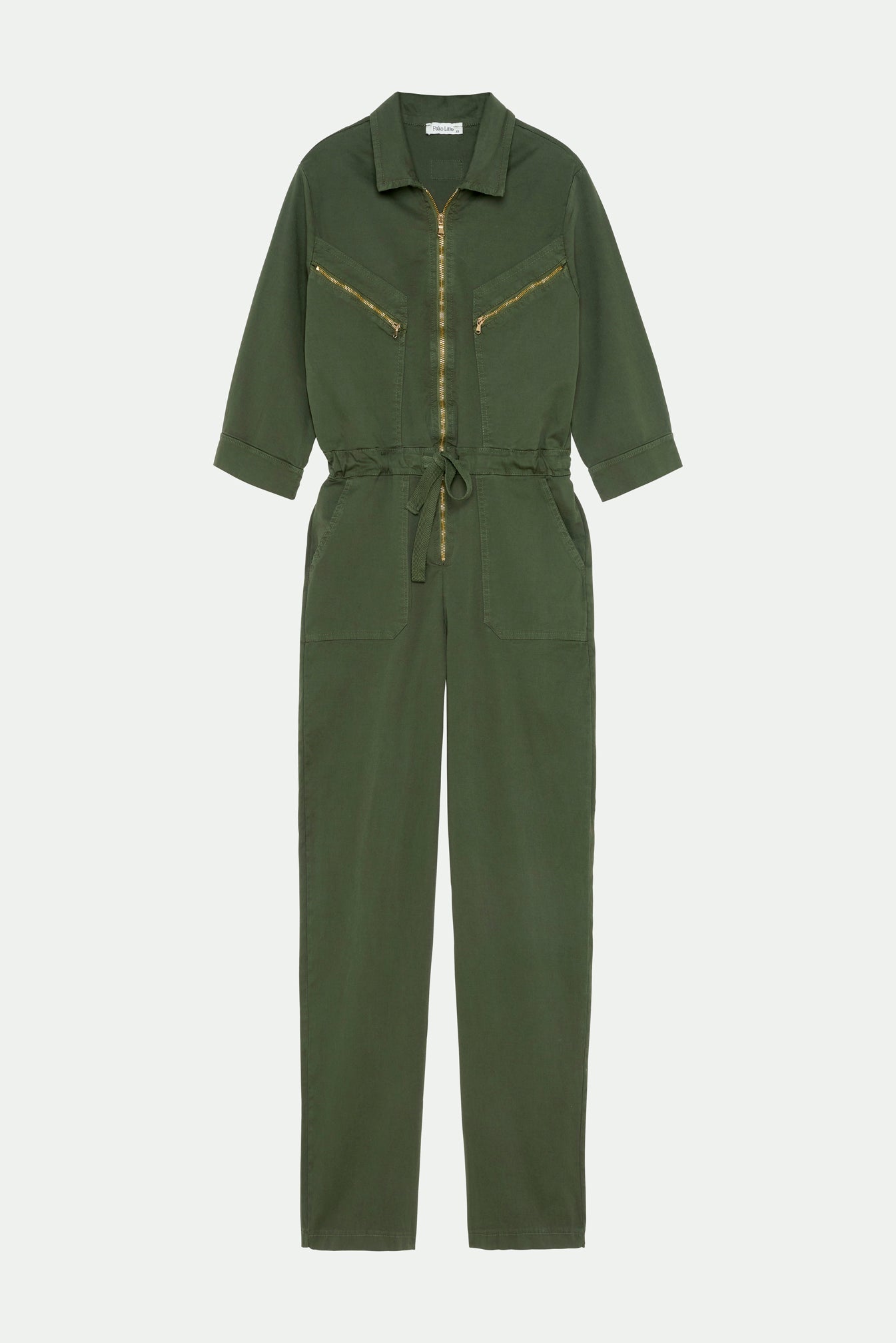 La combinaison Baxter kaki vous offre une allure tendance et décontractée ! Elle possède une coupe oversize, des manches 3/4, des poches zippées et une ceinture intégrée pour une adaptation parfaite à votre taille. Disponible dans de nombreux coloris, vous pouvez personnaliser votre tenue en effectuant des ourlets aux chevilles ou non.