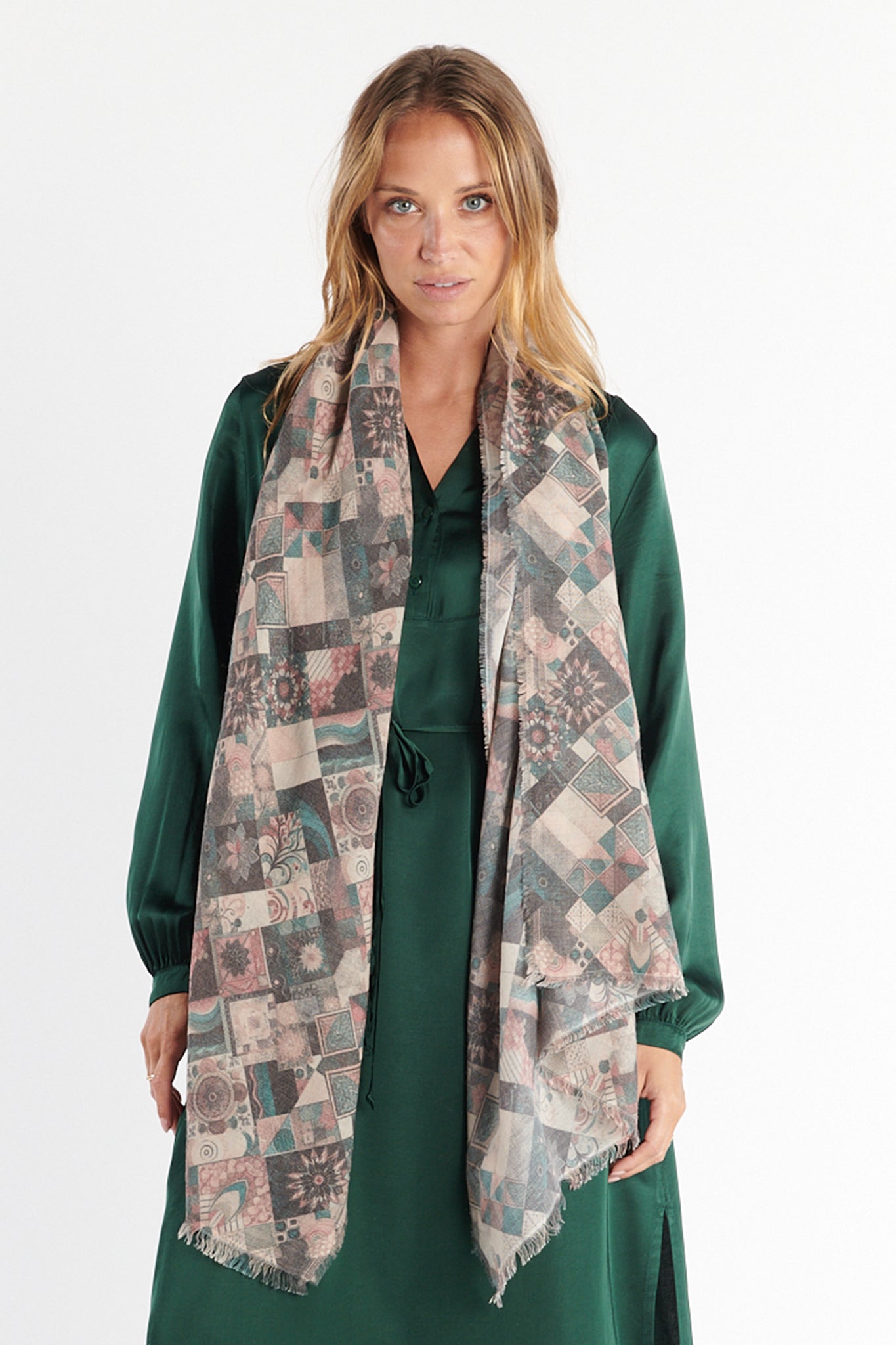 CHECHE DASTAN IMPRIMÉ VERT MOSAIQUE