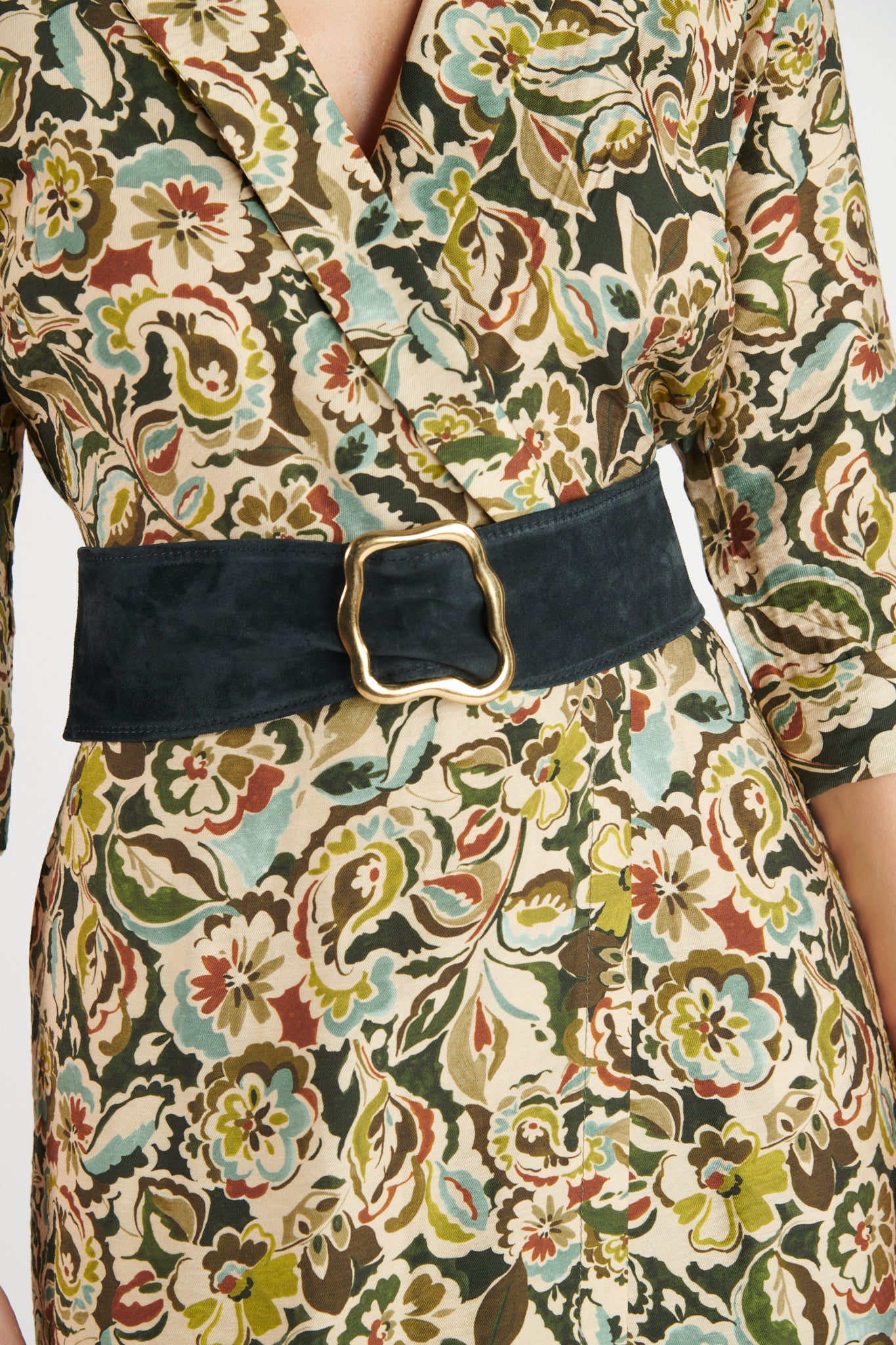 ROBE LONGUE CACHE COEUR DAYA IMPRIMÉ FLOWER KAKI