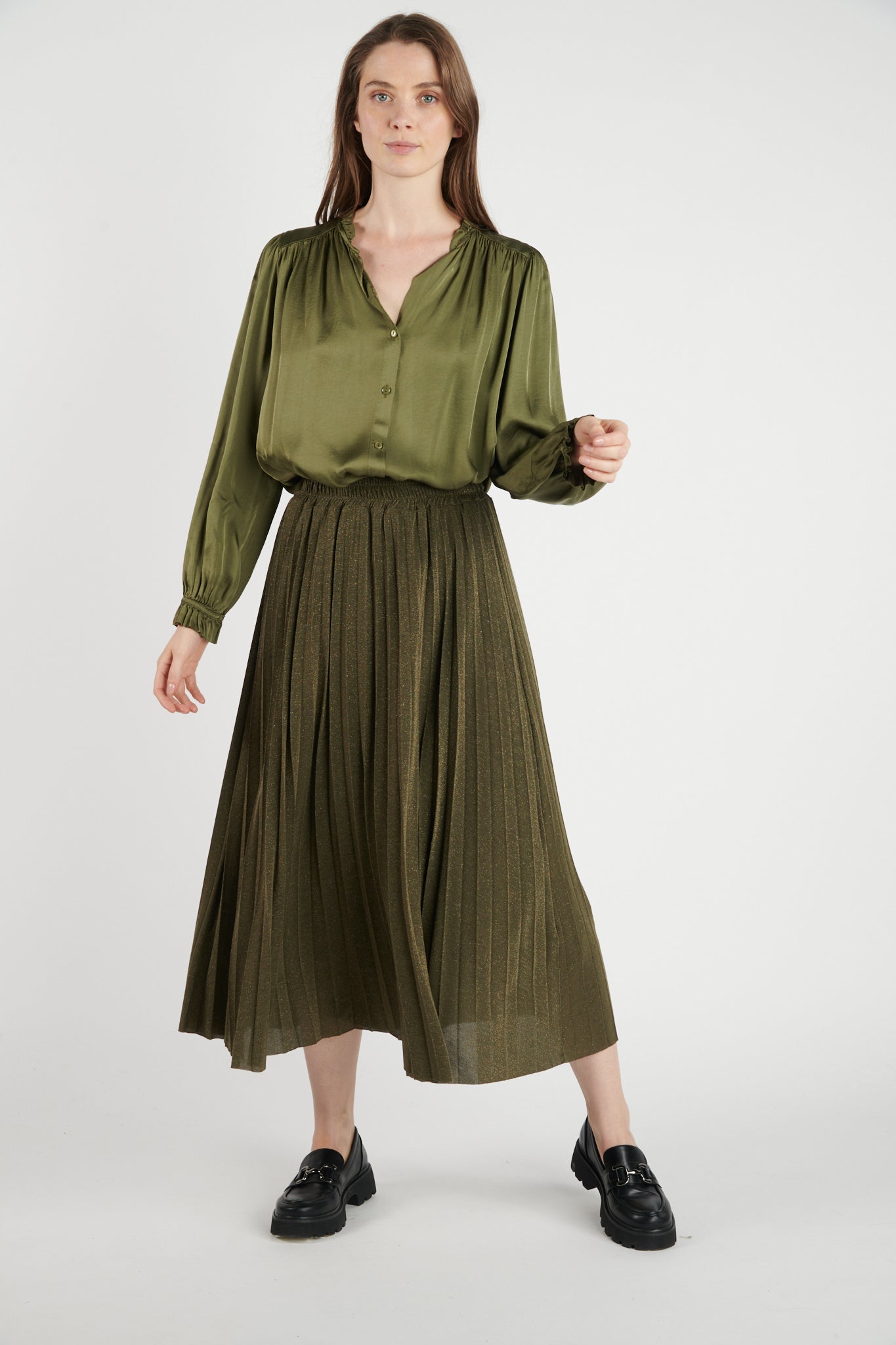 JUPE PLISSÉ PAILLETTE DARYNA KAKI