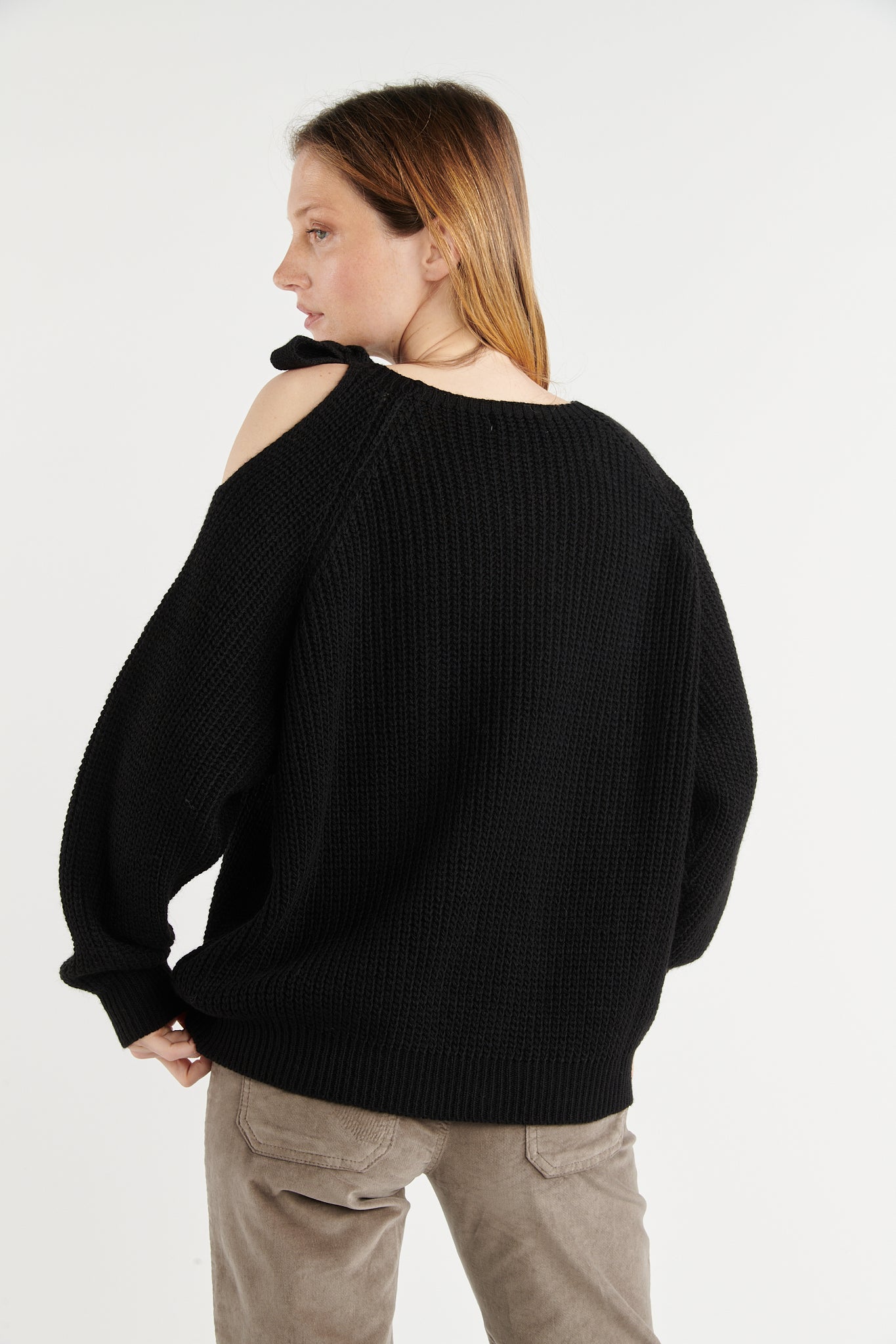 Féminin et tendance le pull Beyda est confectionné maille épaisse et dispose d'un détail noué à l'épaule gauche. Son encolure ronde et ses détails côtelés au cou, aux manches et sur le bas du pull apporte une touche d'élégance. Disponible en coloris noir, naturel et rose argile, c’est le modèle parfait pour allier style et confort cet hiver.
