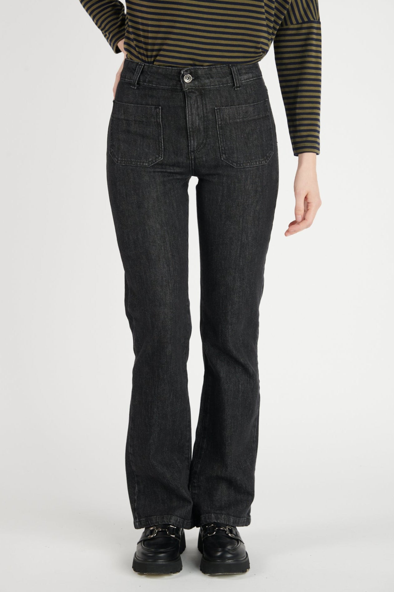 Élégant et facile à porter, ce jean flare en denim noir sublime toutes les silhouettes. Sa taille haute allonge la jambe, tandis que ses poches plaquées à l’avant ajoutent une touche d’originalité. Il vous accompagnera tout au long de l'année, en toute occasion.