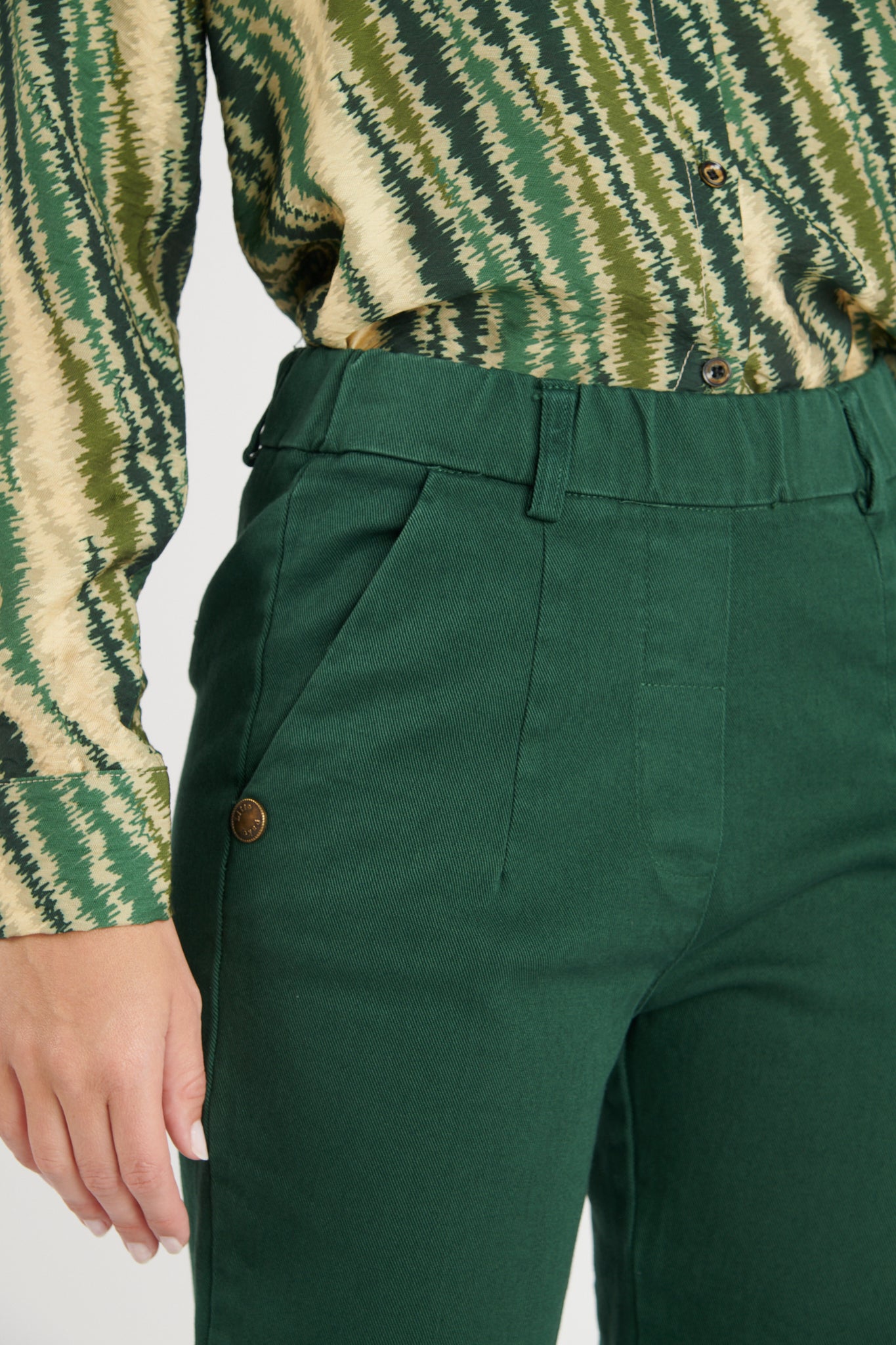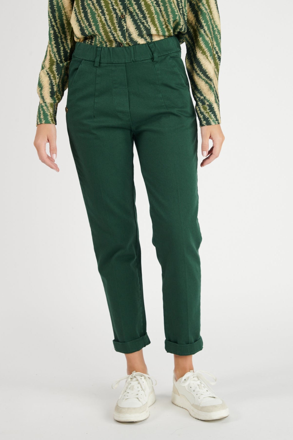 Le pantalon chino Clint se décline dans un vert pin élégant. Confectionné dans un mélange de coton et d’élasthanne, il offre à la fois souplesse, confort et maintien. Sa coupe ajustée associée à une jambe légèrement fuselée met en valeur la silhouette, tandis que la ceinture élastiquée assure un ajustement optimal. Les poches italiennes à l’avant et les poches passepoilées au dos signent une finition classique et soignée.