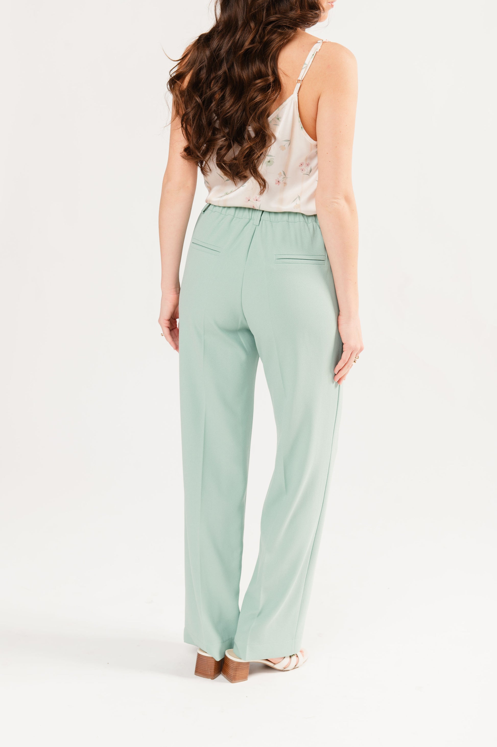 Le pantalon de tailleur Eugène en coloris vert poudré se distingue comme une pièce essentielle du dressing, facile à porter en toute saison. Sa coupe droite et fluide, associée à une taille haute élastiquée, offre une silhouette élégante tout en garantissant un confort optimal. Réalisé dans une matière crêpe légère, il assure un tombé impeccable tout en limitant les plis. Idéal à associer avec la veste Édouard ou Élina, il permet de créer un ensemble tailoring moderne et sophistiqué.