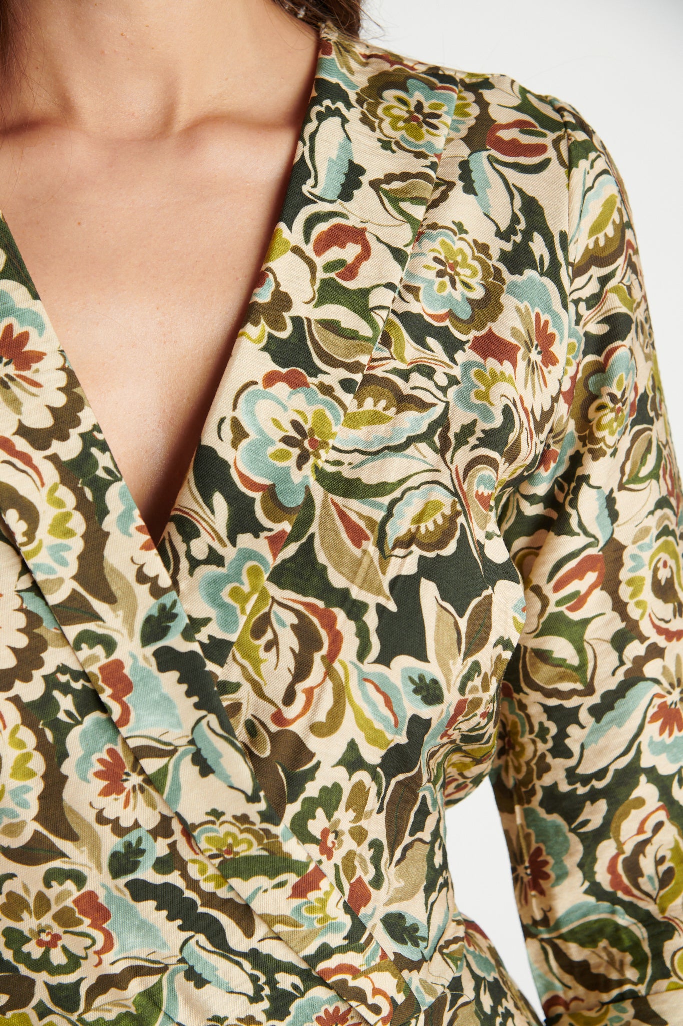 ROBE LONGUE CACHE COEUR DAYA IMPRIMÉ FLOWER KAKI