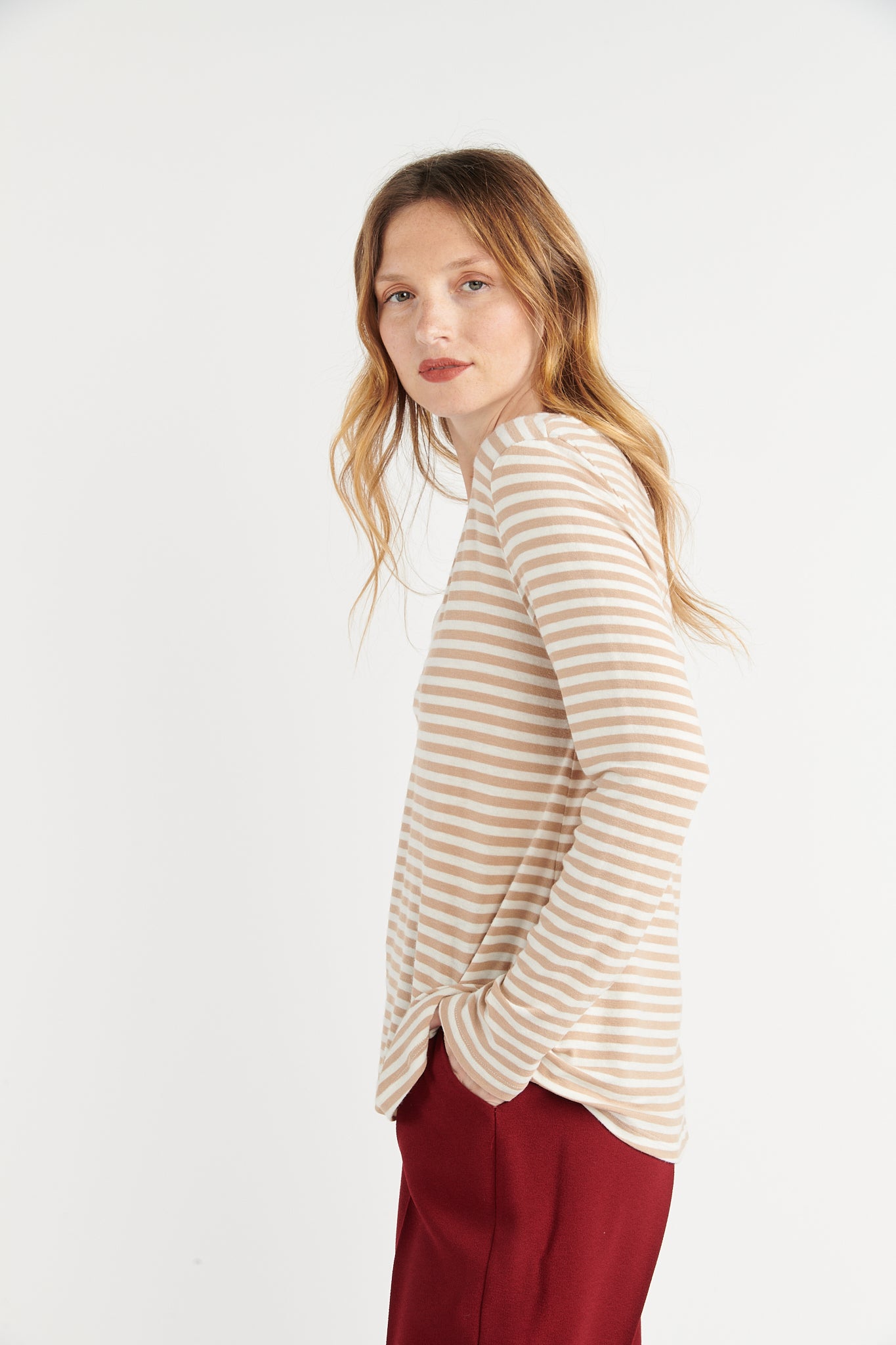 T-SHIRT COL V RAYURES BEIGES BADIALLO
