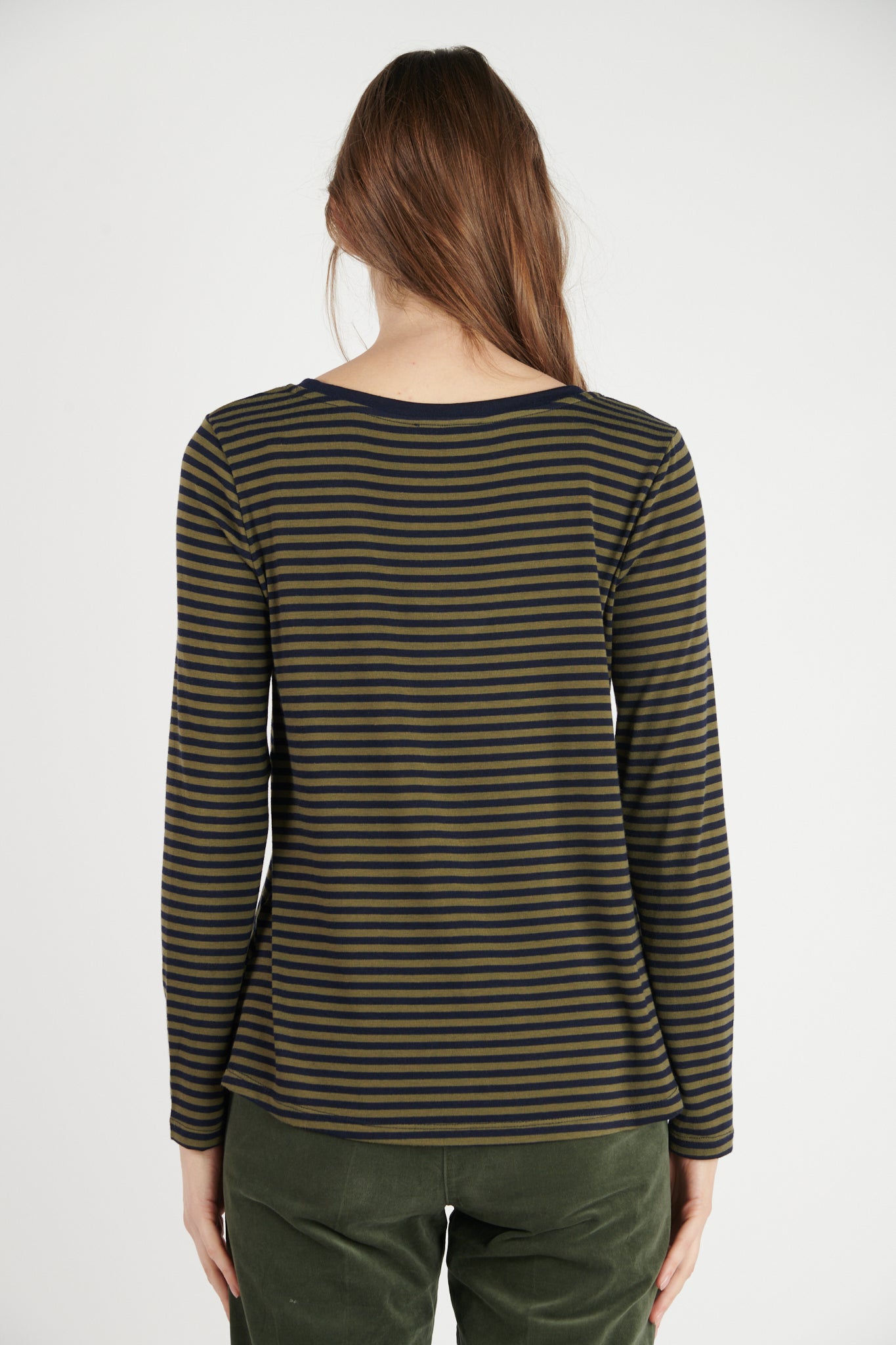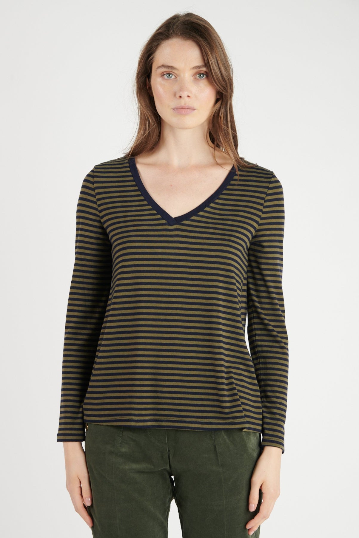 T-SHIRT RAYURES BADIALLO KAKI MARINE